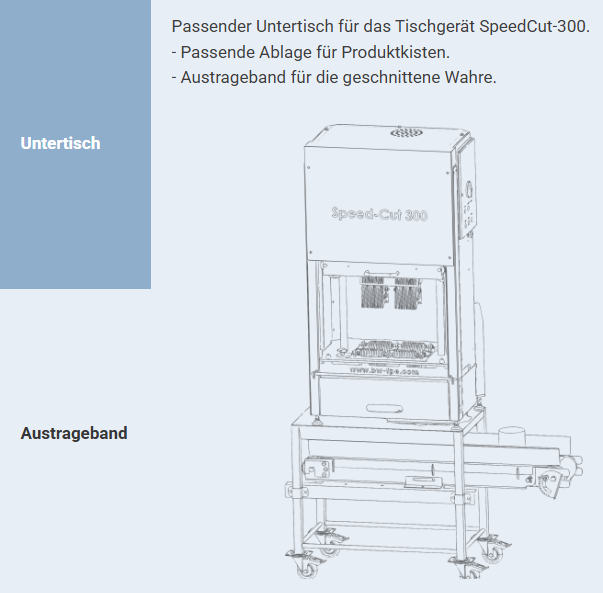 Tischgerät mit optionalem Untergestell und Austrageband erhältlich